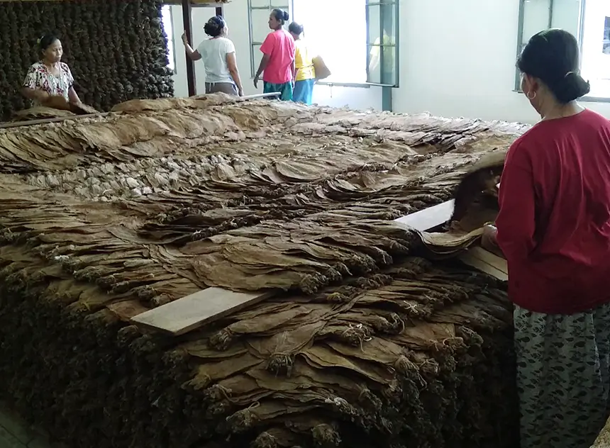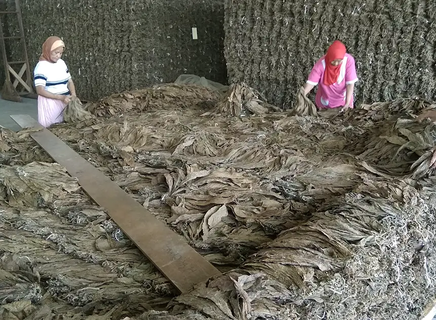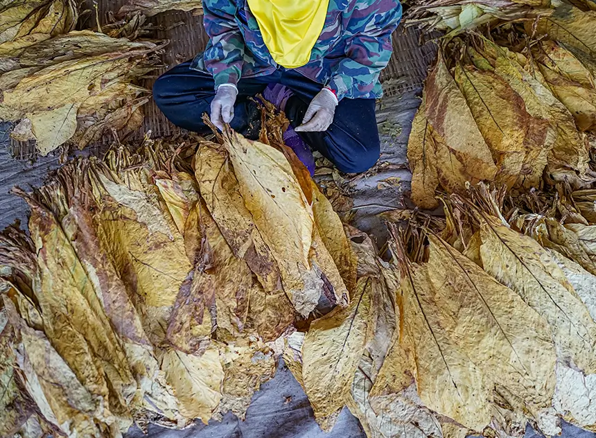 Tobacco leaves are carefully graded and sorted based on style, stalk position, maturity, and uniformity—key factors reflected in their color and thickness. Manual sorting into homogeneous lots ensures consistency and high quality. This critical step is essential to match manufacturing requirements and serves as a crucial starting point in the tobacco production process.